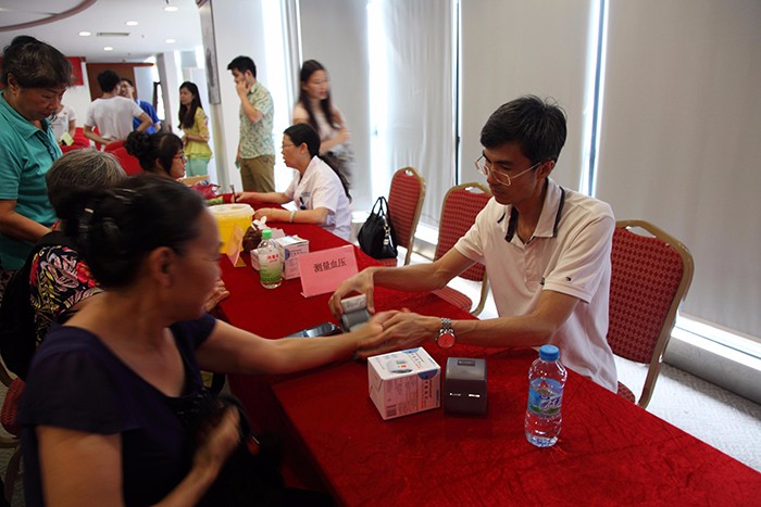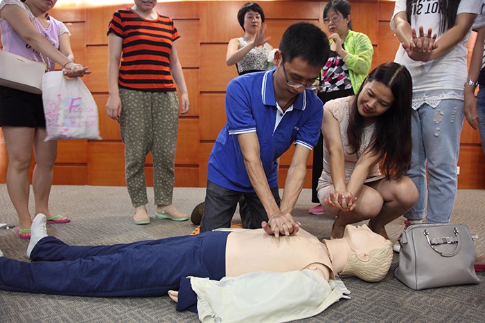讲座中,福田区人民医院急救科张岸林副主任通过PPT图文并茂地向大家讲解了如何进行心脏按压、徒手心肺复苏等具体操作方法,在他的精彩讲解下,参加培人员认真听课,并对急救要点做了详细的笔记。讲解结束后,他在急救助手的辅助下,通过“模拟人”向大家展示了徒手心肺复苏技术操作演示,并邀请现场职工进行模拟演练,大家争先恐后参与模拟演练,整个讲座现场表现出热烈的学习氛围。讲座结束后,福田区人民医院妇科主任医师黄晓慧、急救科张岸林一起为PP电子(中国区)官方网站的员工和社区居民进行了健康咨询、量血压、血糖测量等义诊活动。活动结束后新PP电子(中国区)官方网站医药公司员工与福田区医院的专家就妇科疾病预防进行了交流和探讨。